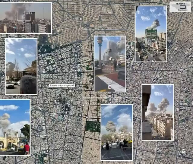 Israeli Air Force strikes destroyed the Iranian regime's headquarters in central Tehran, along with the General Headquarters of Internal Security Forces. It was a command and control center linking the regime to field forces and suppressing civilians and the Tharallah headquarters for defending Tehran. Dozens of fighter jets executed another wave over Tehran skies. Apparently, B-1 bombers are doing a big chunk of the work, which is interesting because they really were meant to drop nukes on Moscow. Fast-moving, heavy-hitting, and now being used on one of Russia's most faithful partners.