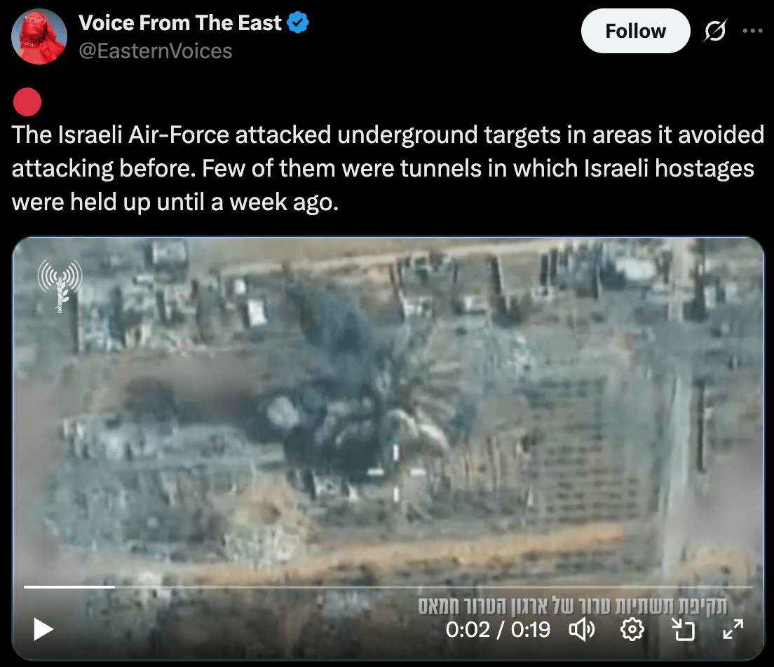 Israeli strikes continue to target sites in and around Khan Yunis in the Southern Gaza Strip. The Israeli Air Force attacked underground targets in areas it had previously avoided, including tunnels that held Israeli hostages until a week ago.