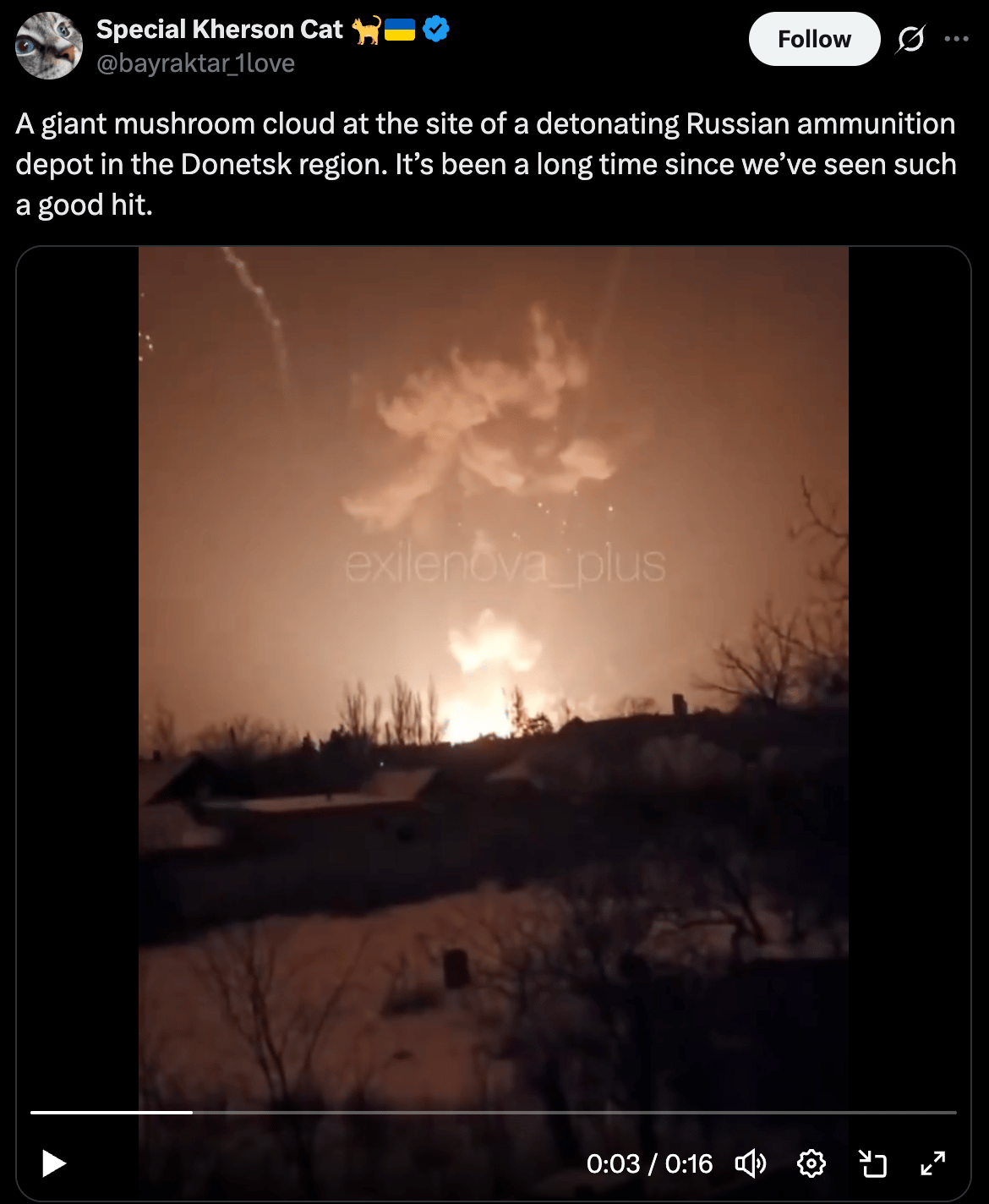 In Russia/Ukraine news, another big explosion happened this week when a detonating Russian ammunition depot in the Donetsk region produced a giant mushroom cloud. There aren’t that many juicy targets like this out there anymore, so it’s fairly impressive to see this happening at this phase of the war.